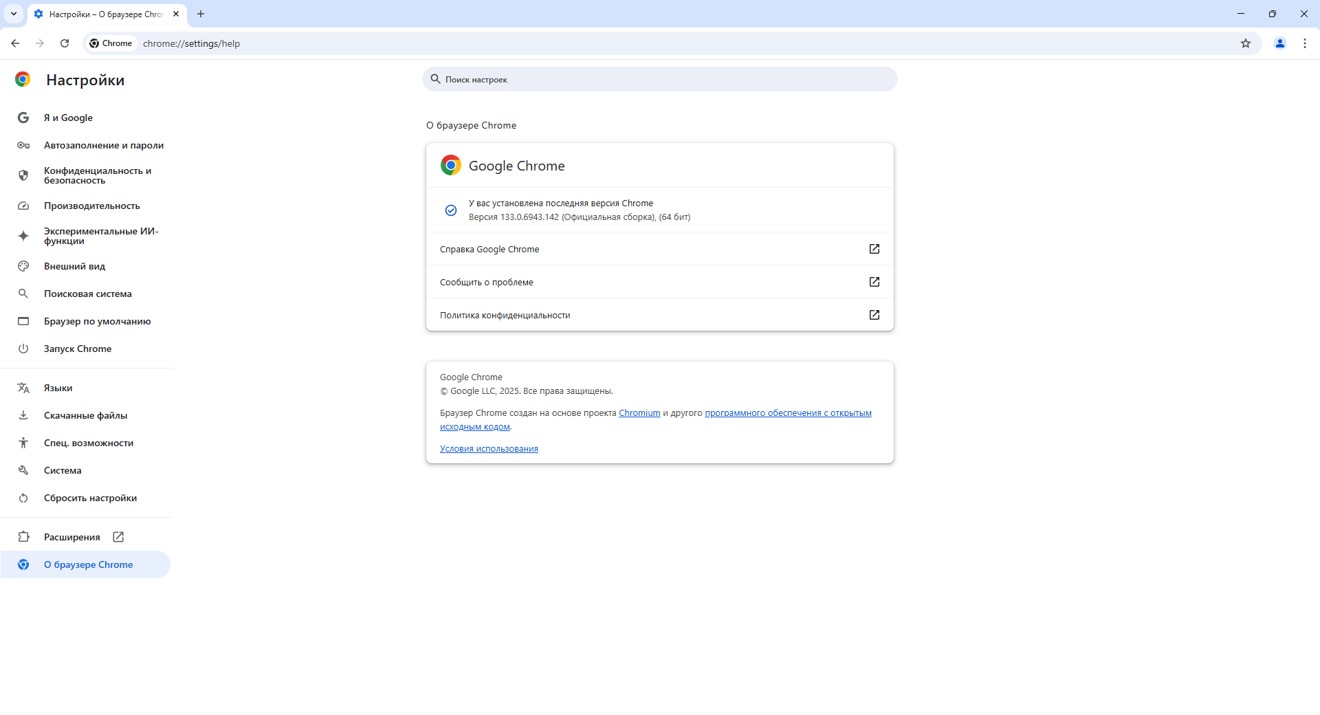 | Версия программы | 133.0.6943.142 |