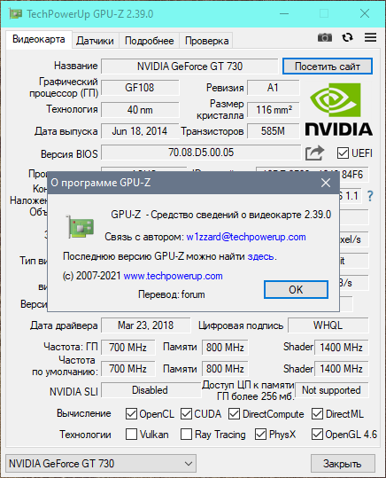 - Показ данных о драйверах, BIOS и поддерживаемых графических технологиях