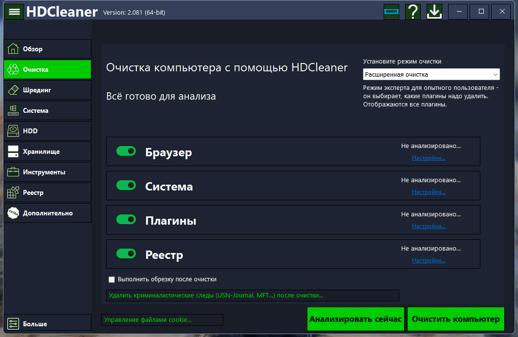 HDCleaner предлагает широкий набор инструментов, позволяющих легко и быстро поддерживать систему в отличном состоянии. Программа ориентирована как на опытных пользователей, так и на новичков, желающих обеспечить стабильную работу ПК.