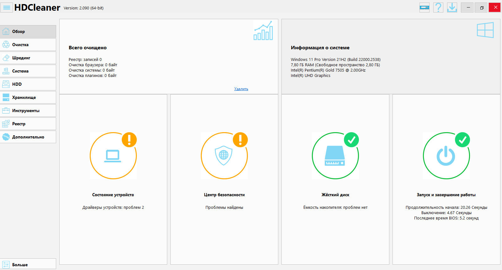 Рекомендуем использовать HDCleaner для регулярного обслуживания системы, чтобы поддерживать ее в максимальной работоспособности и безопасности.
