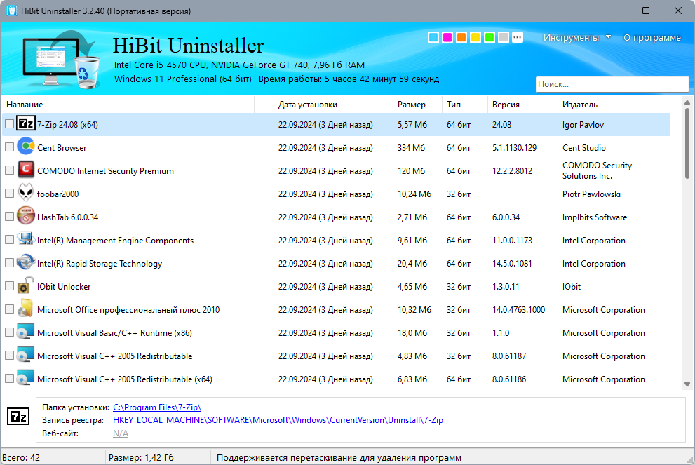 - Мгновенная очистка системы от остатков после деинсталляции