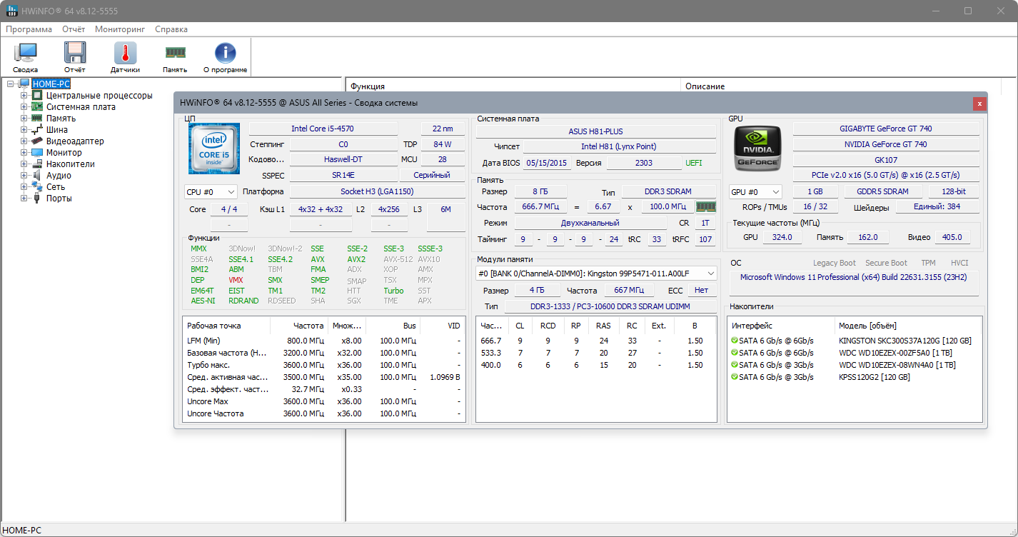 HWiNFO предоставляет детальные сведения о аппаратной части системы, а также возможность мониторинга и тестирования. Этот инструмент помогает диагностировать неисправности, оптимизировать работу ПК и отслеживать параметры в режиме реального времени.