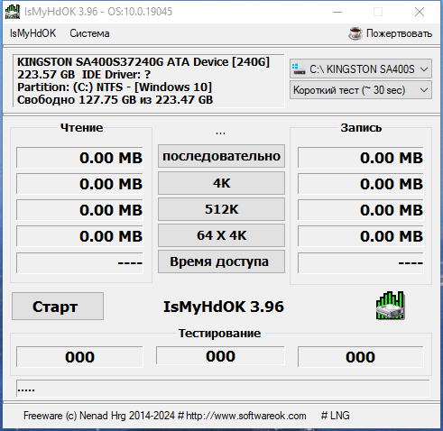 IsMyHdOK — это компактная и эффективная утилита для оценки производительности жестких дисков и SSD. Она предназначена для быстрого и удобного тестирования состояния накопителей без необходимости сложной установки и настройки.