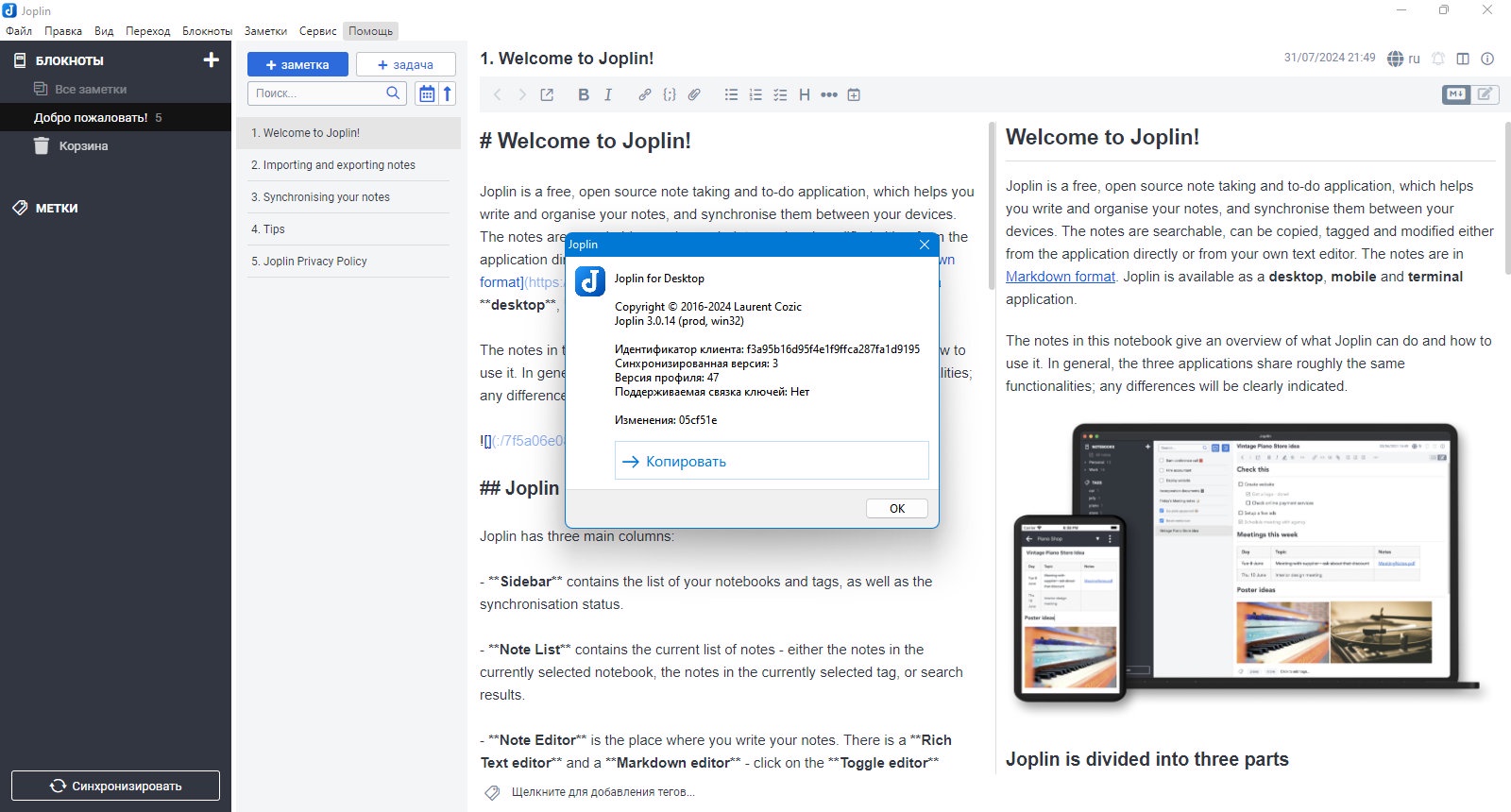 Ниже приведены основные технические характеристики Joplin 3.0.14, а также сведения о версиях и сборках, если таковые имеются.