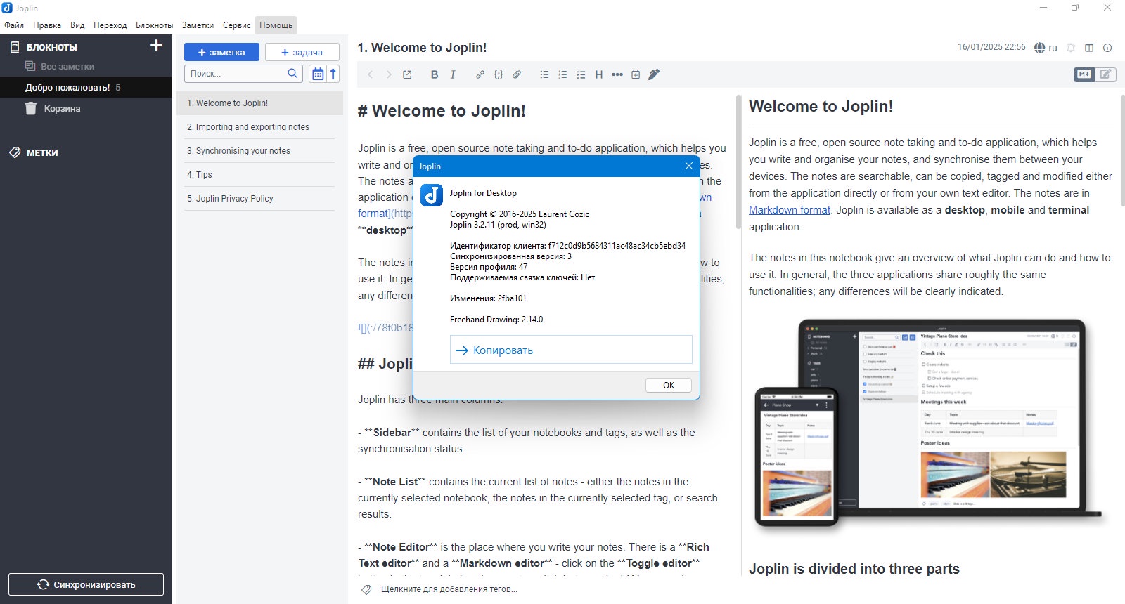 Joplin предлагает широкий функционал для хранения, организации и поиска заметок, позволяя пользователям легко управлять информацией и интегрировать её с другими сервисами.