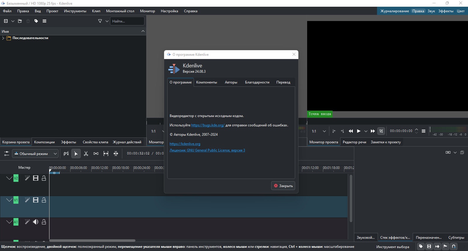 Kdenlive — это мощный и бесплатный нелинейный видеоредактор, предназначенный для выполнения широкого спектра задач видеомонтажа. Программа подходит как для начинающих пользователей, так и для профессионалов, предоставляя инструменты для создания качественного видео контента.