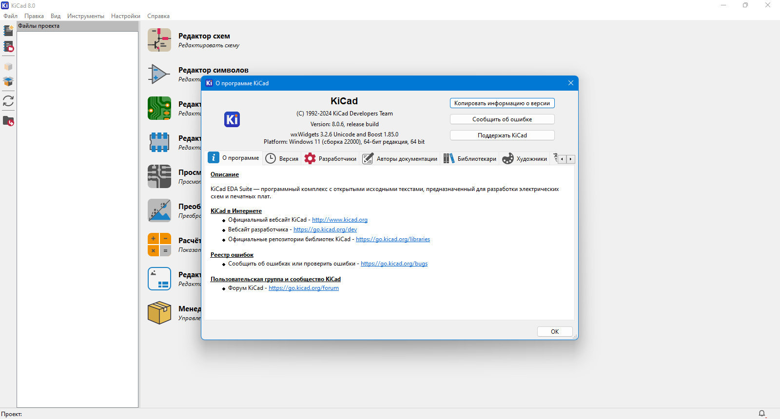 KiCad 8.0.6 — это мощное программное обеспечение для проектирования печатных плат и создания электронных схем. Оно предназначено для инженеров и разработчиков, работающих в сфере электроники, и позволяет создавать профессиональные макеты и проверять их на ошибки.