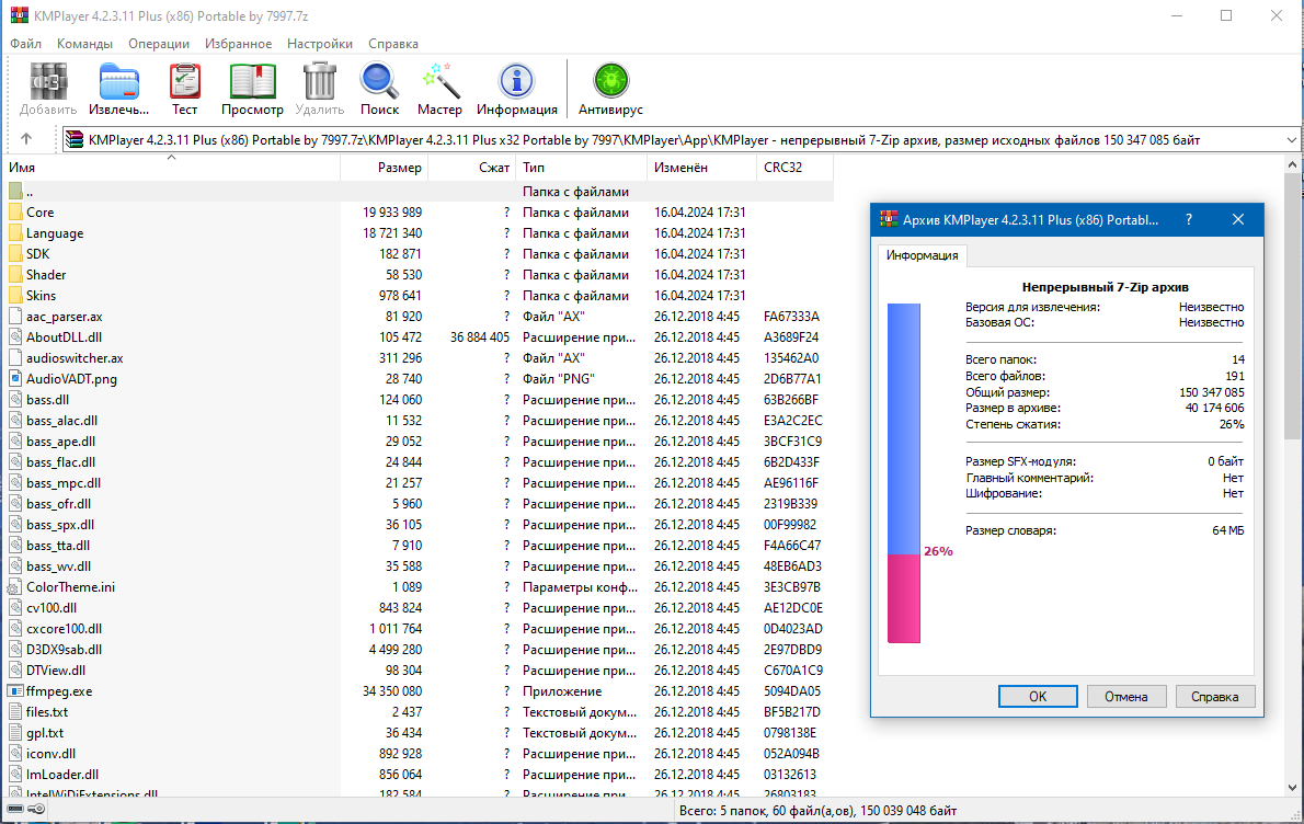 Ниже приведены основные технические параметры и сведения о версии KMPlayer, а также о сборке, если она указана в названии архива.
