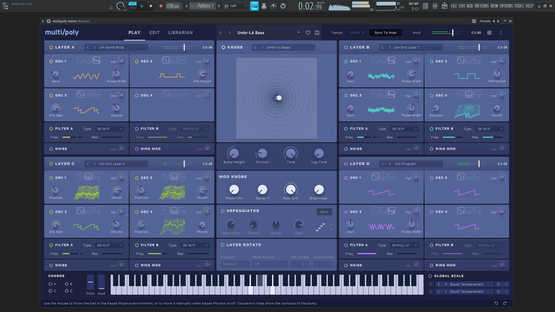 - Широкий выбор осцилляторов и фильтров, позволяющих создавать необычные тембры и эффекты