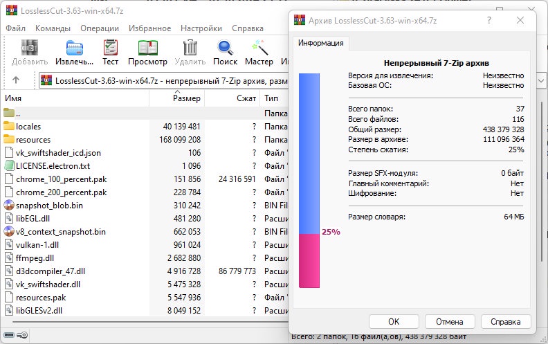 Ниже приводятся основные технические характеристики LosslessCut 3.64.0: