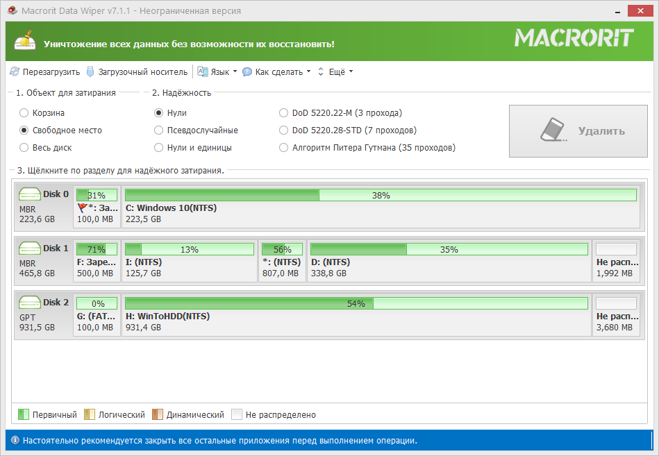 Macrorit Data Wiper предоставляет пользователю эффективные средства для безопасного стирания информации с различных носителей. Это особенно актуально для тех, кто занимается утилизацией старых дисков или хочет защитить конфиденциальные данные.