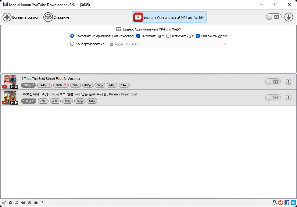 - Поддержка скачивания в оригинальном качестве без потери качества.
