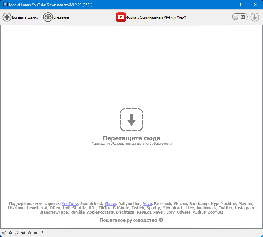 - Загрузка видео и аудио с YouTube, Rutube, Vimeo, Dailymotion и других сайтов