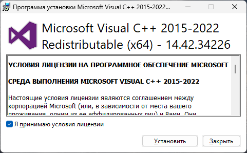 Microsoft Visual C++ 2015-2022 Redistributable — это набор компонентов, необходимых для запуска приложений, разработанных с использованием Visual Studio и использующих библиотеки Visual C++. Установка этого пакета обеспечивает корректную работу различных программных продуктов, требующих среды выполнения C++.
