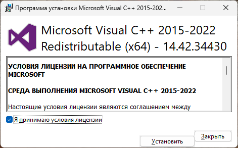 Microsoft Visual C++ 2015-2022 Redistributable — это набор компонентов, необходимый для корректной работы приложений, созданных с использованием среды разработки Visual Studio. Он обеспечивает поддержку выполнения различных программ, использующих библиотеки Visual C++.