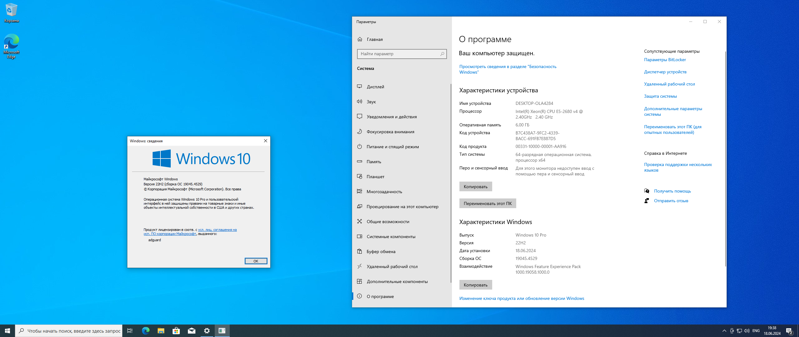| Версия программы | 22H2 (build 19045.4529) |