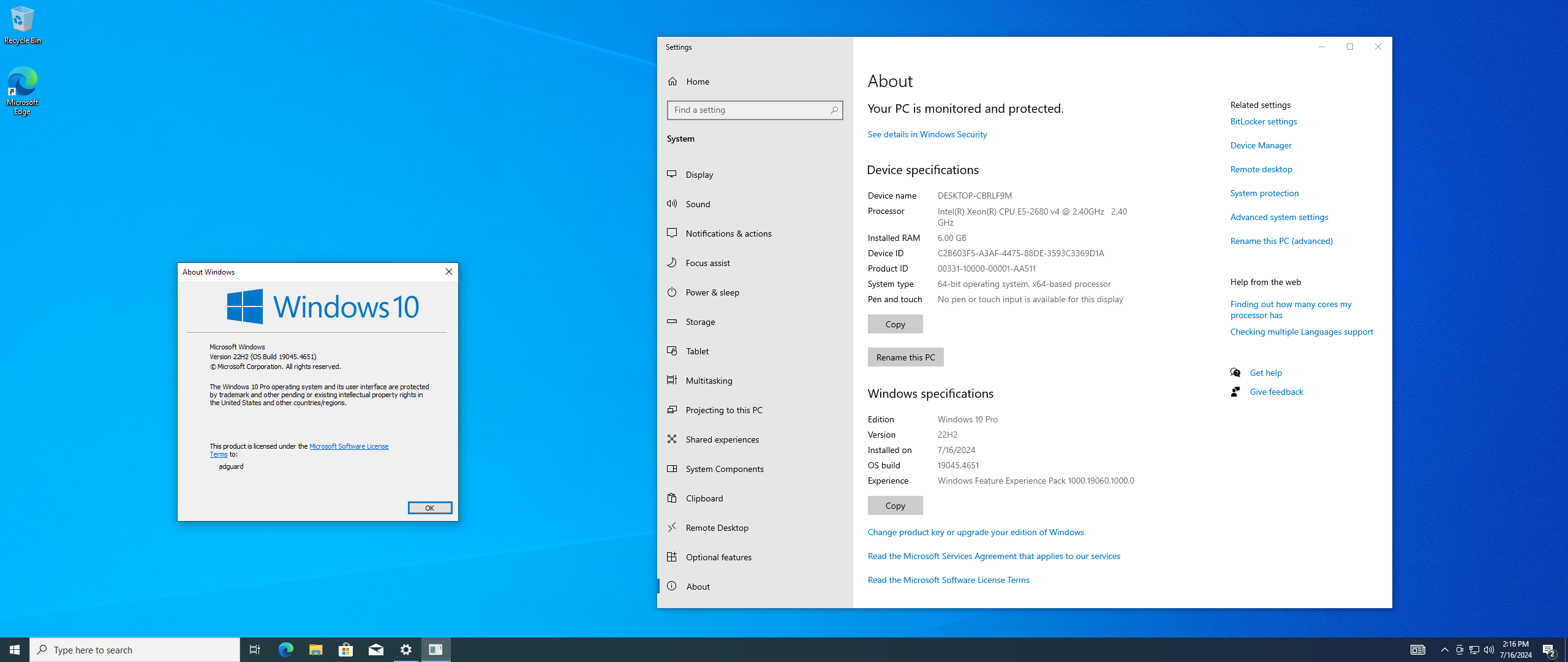 | Версия программы | 22H2 (build 19045.4651) |