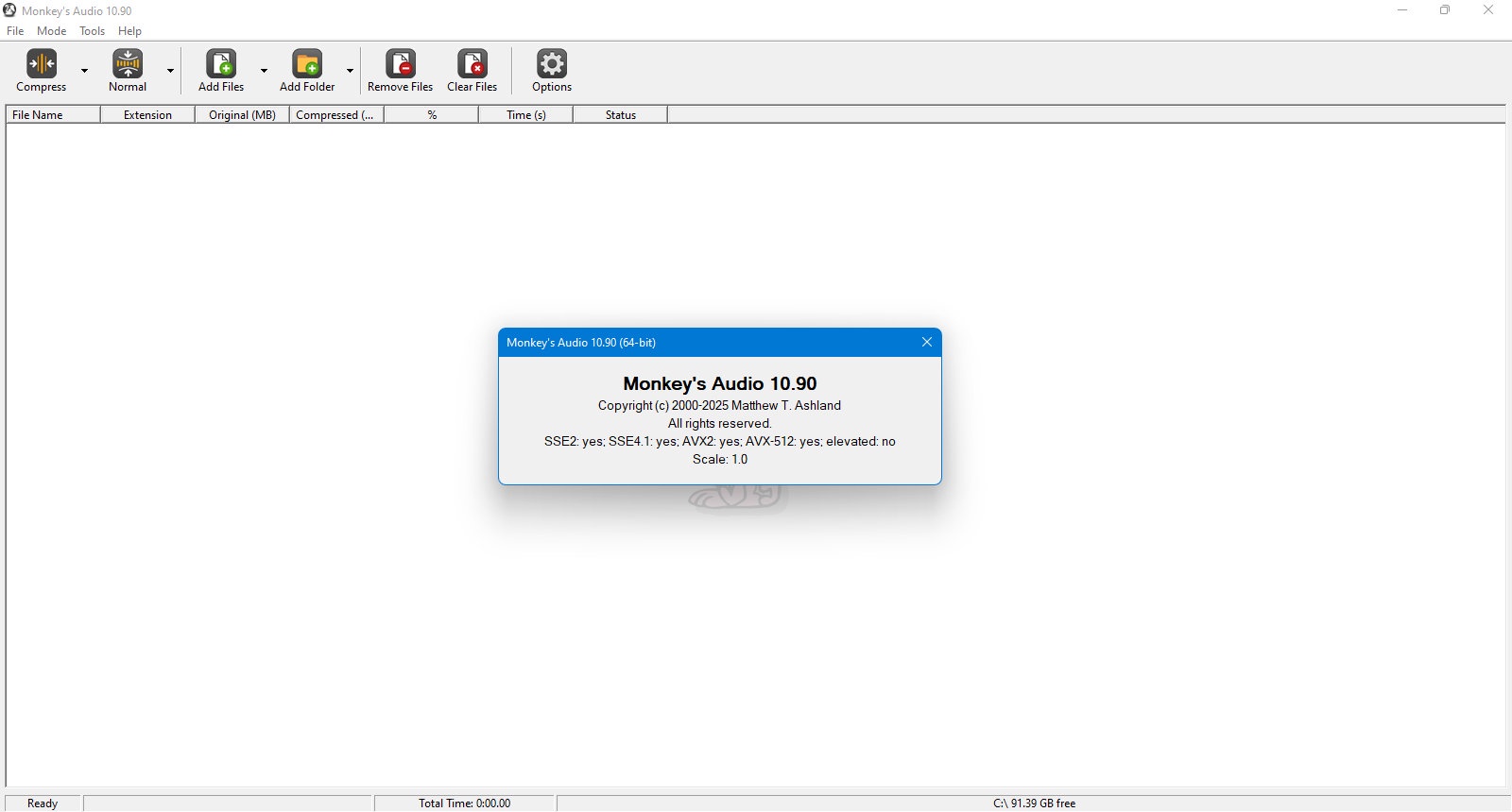 Monkey’s Audio 10.90 — это надежное решение для тех, кто ищет качественное сжатие аудиофайлов без потери исходного качества. Рекомендуется использовать официальную версию для максимально безопасной и стабильной работы.