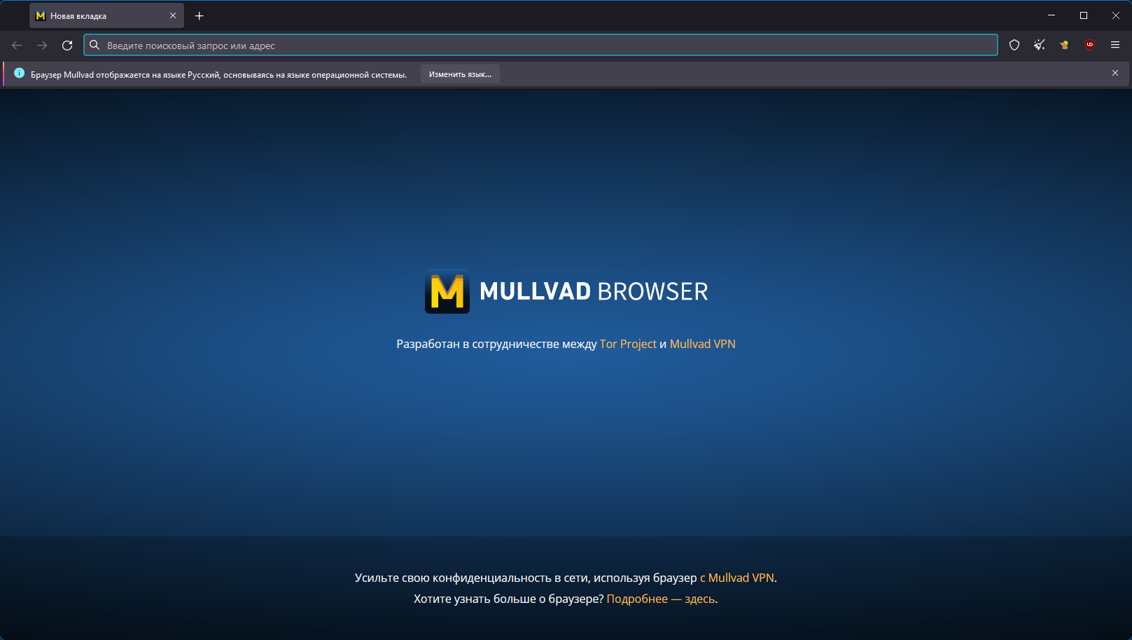 - Интеграция дополнения Mullvad для отображения информации о соединении и использовании VPN, без необходимости его обязательной активации.