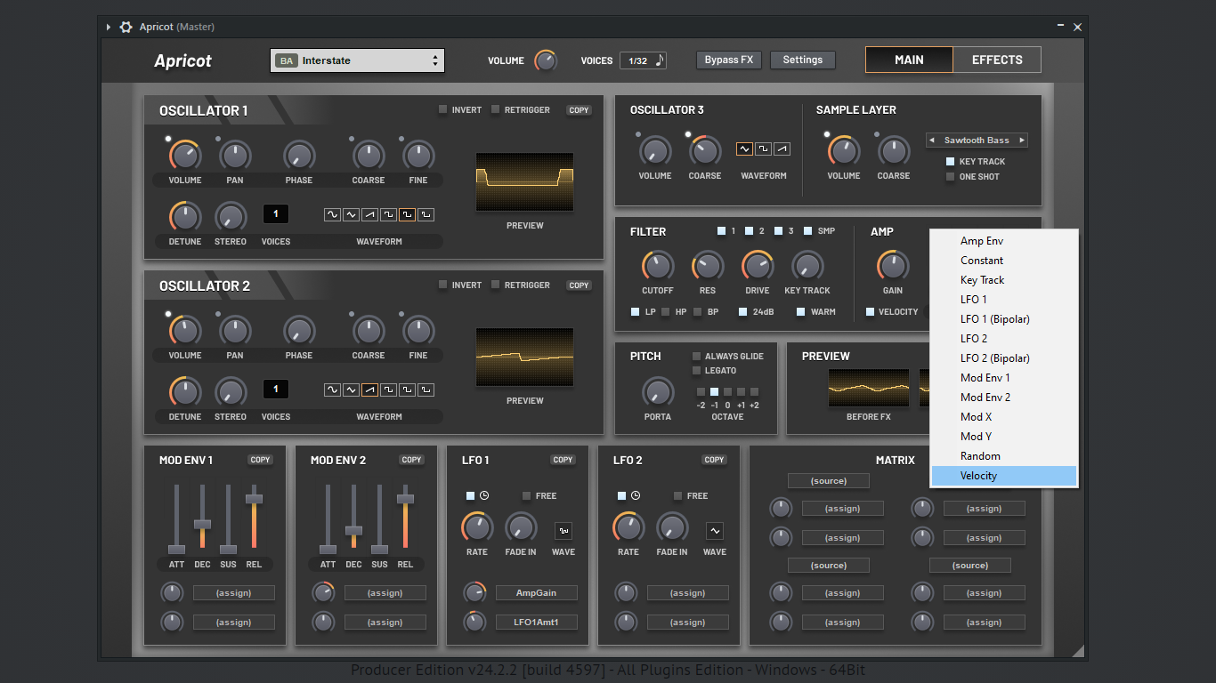 Apricot — мощный синтезатор с современным интерфейсом и широкими возможностями для создания уникальных звуков. Программа сочетает в себе гибридный синтез и работу с семплами, что позволяет достигать разнообразных эффектов и текстур.
