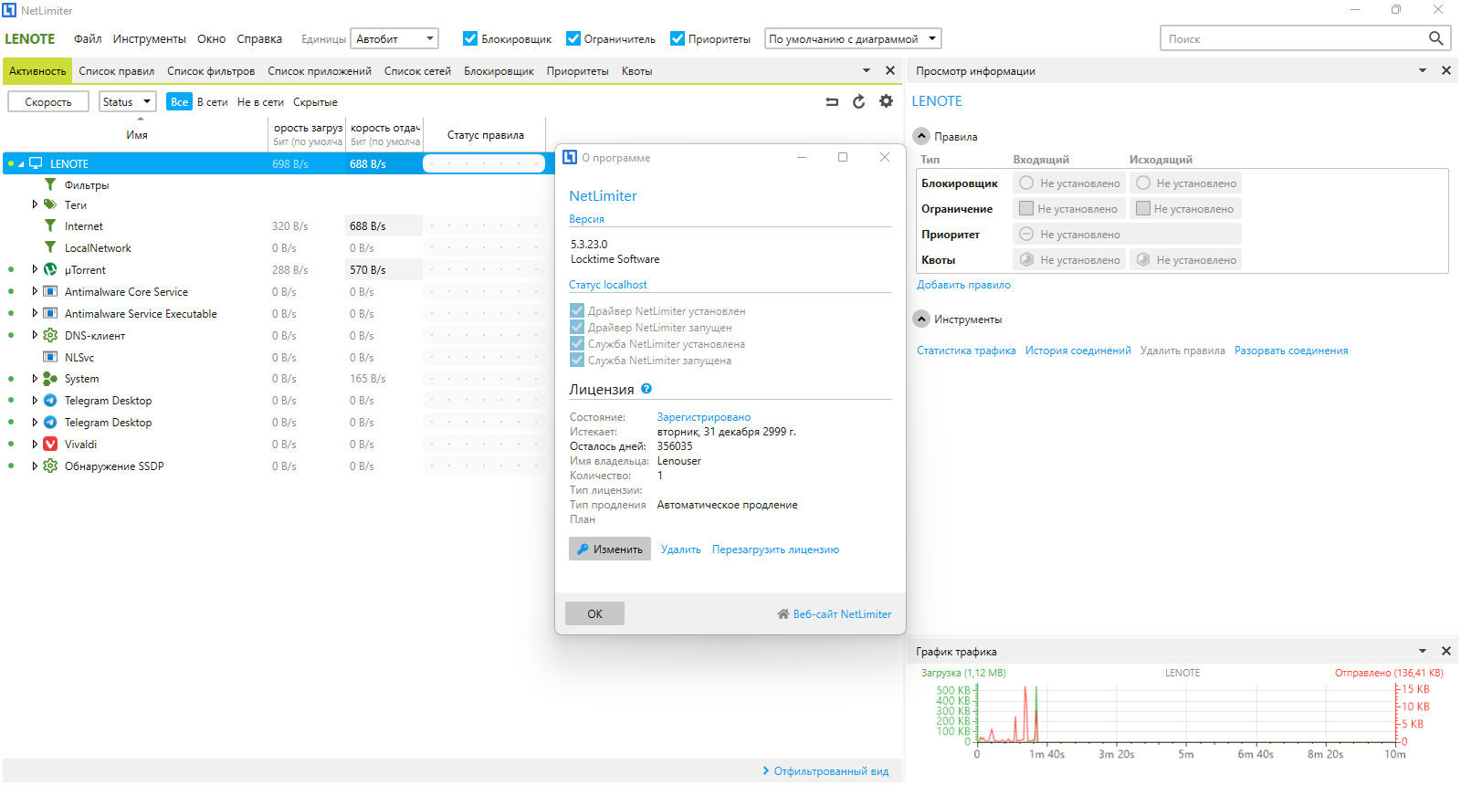 NetLimiter предлагает широкий спектр инструментов для точного контроля за сетевым трафиком, обеспечивая безопасность и эффективность работы системы.
