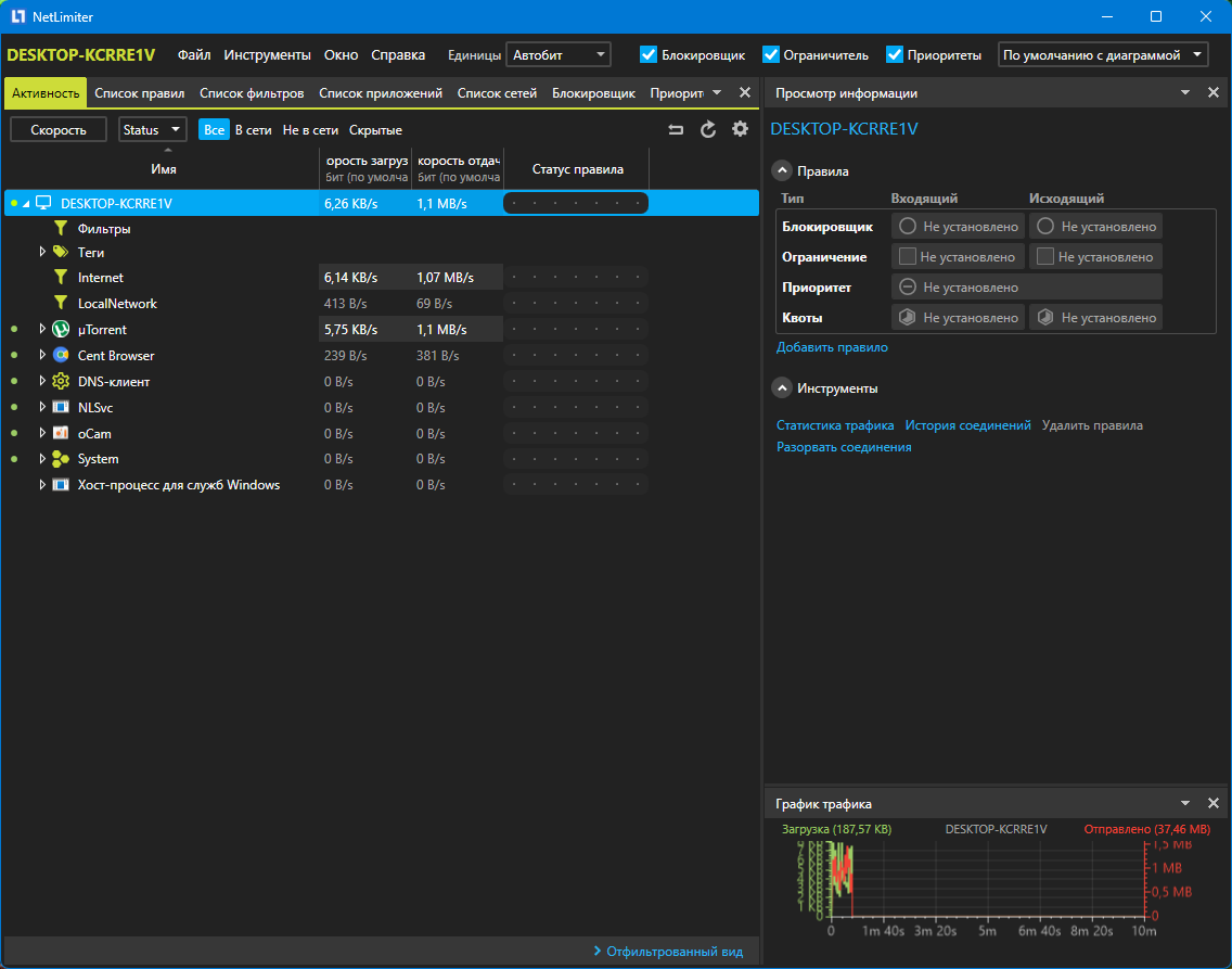 NetLimiter — это мощная программа для контроля и управления сетевым трафиком на компьютере. Она предназначена для мониторинга, ограничения и приоритезации интернет-соединений для различных приложений, что позволяет оптимизировать использование сетевых ресурсов и повышать безопасность работы в сети.