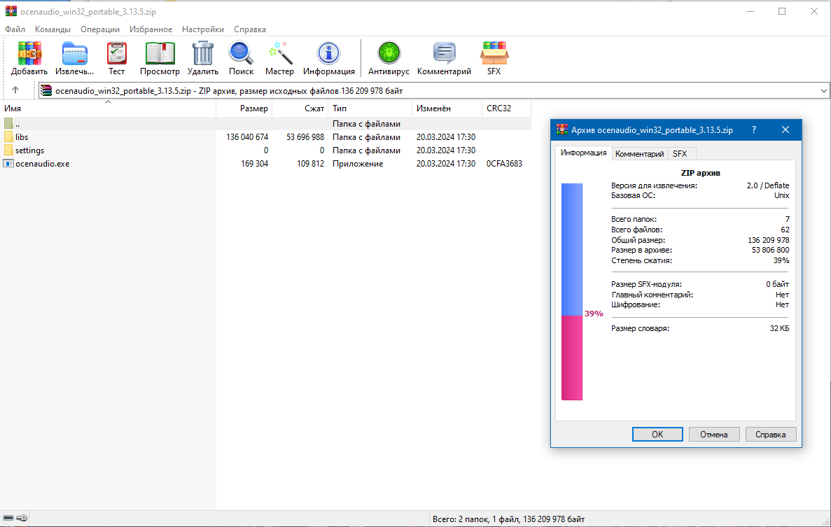 Ниже приведена таблица с основными техническими характеристиками Ocenaudio 3.13.5: