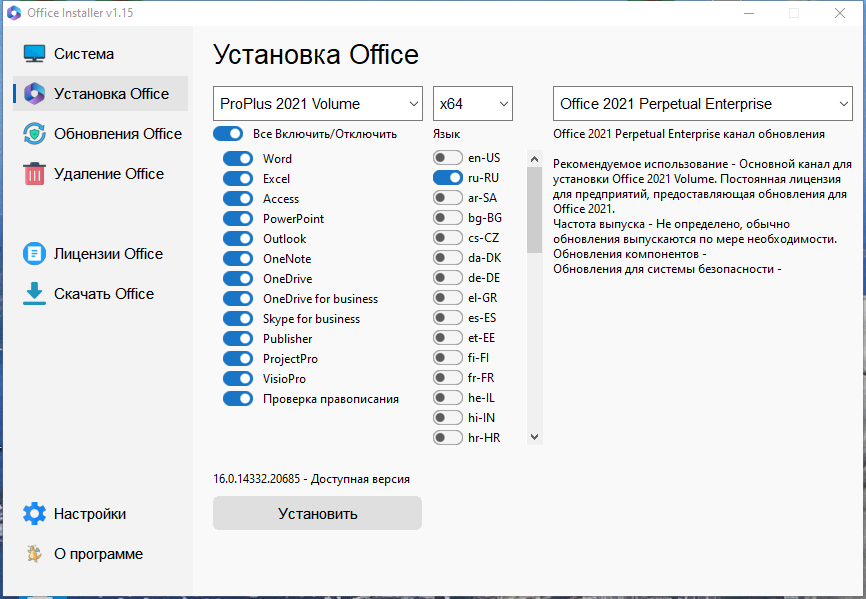 Office Installer & Office Installer+ 1.15 by Ratiborus — это мощная программа, предназначенная для установки и активации офисных пакетов Microsoft Office. Она позволяет как онлайн, так и офлайн установку, а также создание собственных дистрибутивов для дальнейшего использования без подключения к интернету.