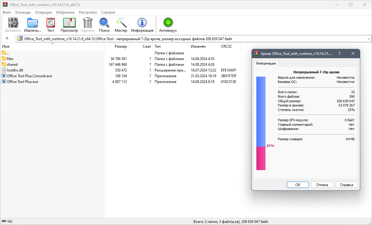 Ниже приведены основные технические характеристики и сведения о версии Office Tool Plus: