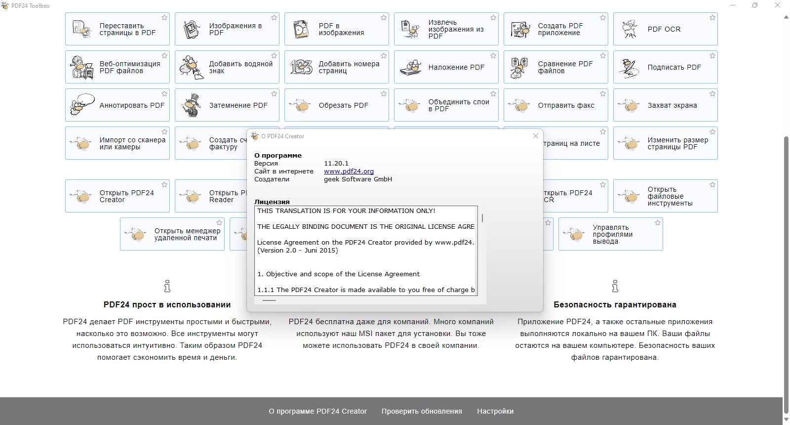 PDF24 Creator предлагает широкий набор инструментов для создания и обработки PDF-документов. Благодаря своему интерфейсу и функциям, программа делает работу с PDF доступной и понятной для пользователей с разным уровнем опыта.