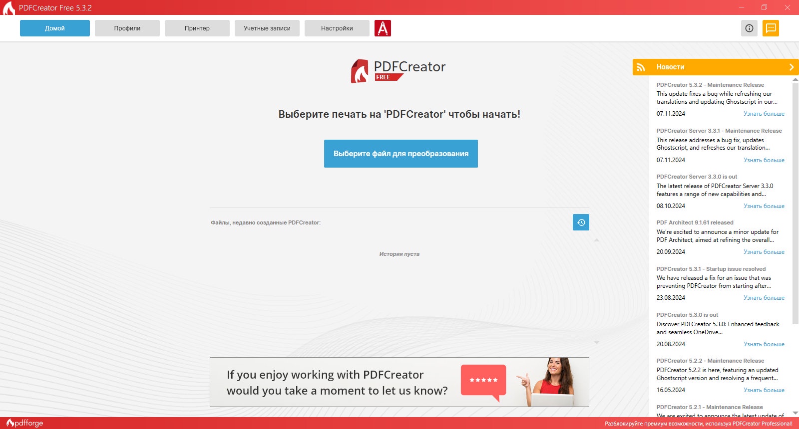 PDFCreator предоставляет пользователю широкий спектр возможностей для работы с PDF и графическими файлами. Простая установка и интуитивно понятный интерфейс делают программу доступной как для новичков, так и для профессиональных пользователей.
