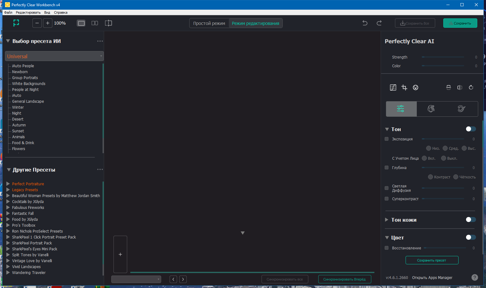Perfectly Clear WorkBench 4.6.1.2660 — это мощное программное обеспечение для автоматической и ручной коррекции фотографий. Оно предназначено для быстрого улучшения качества изображений с минимальными усилиями пользователя, используя запатентованные технологии и научные исследования.