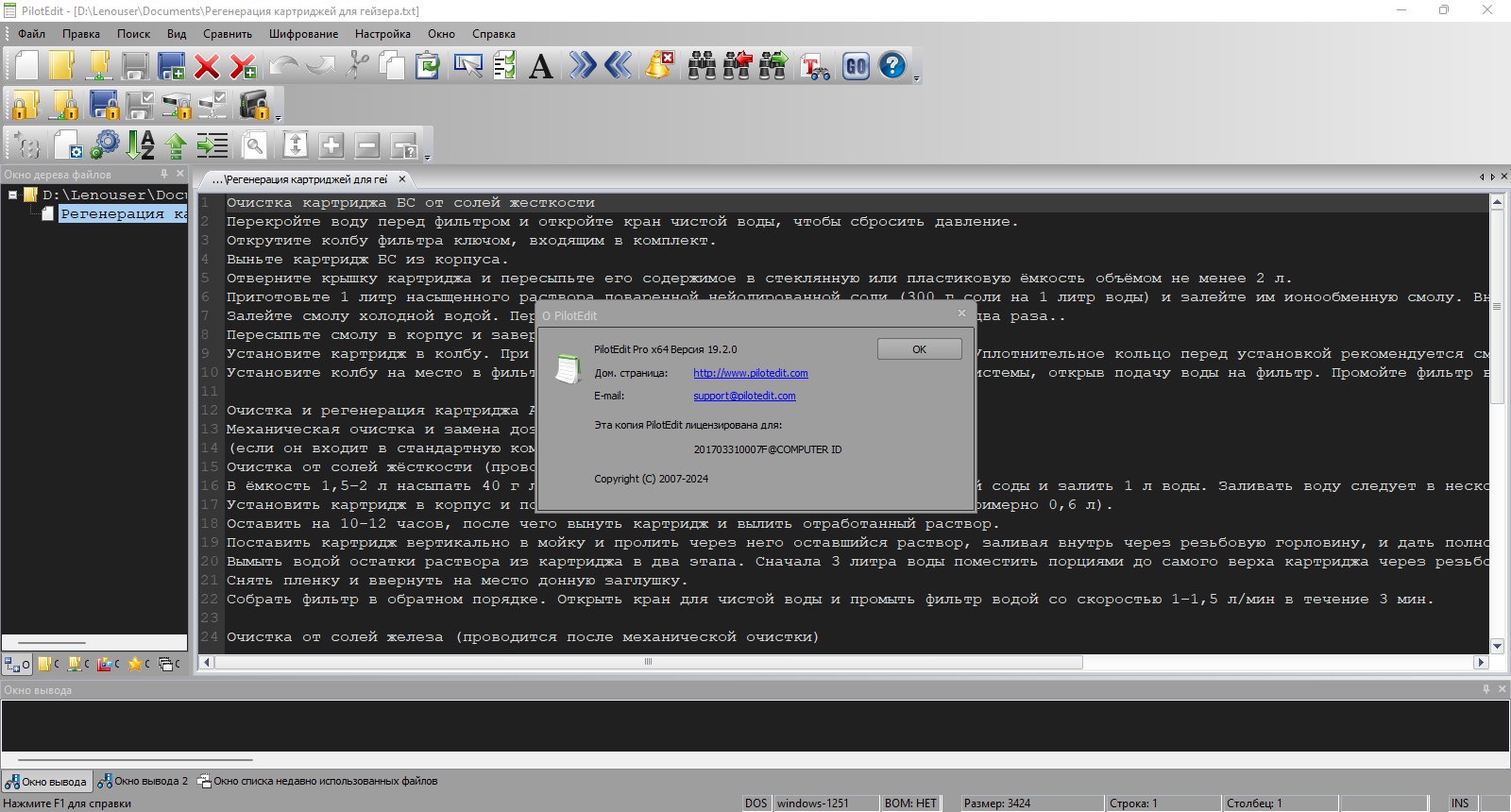 Ниже представлена таблица с основными техническими характеристиками PilotEdit 19.2.0: