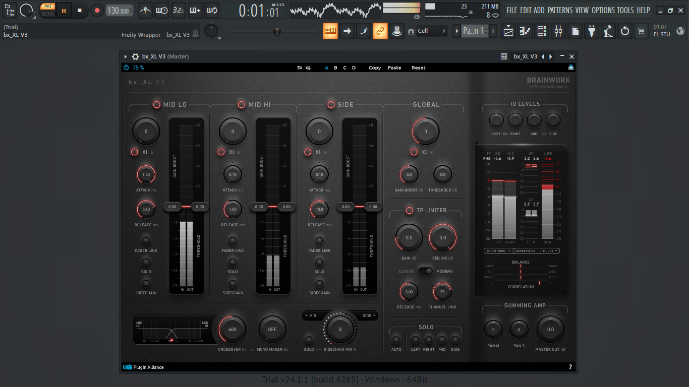 - Трехполосный mid/side лимитер и эквалайзер для точной обработки каналов