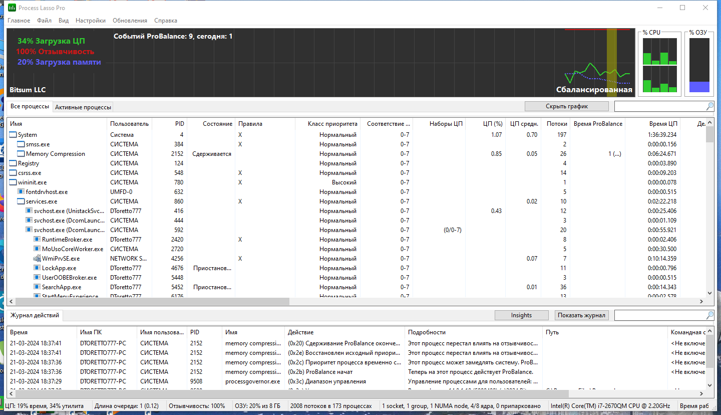 Process Lasso Pro предоставляет широкий набор функций для контроля и настройки процессов в системе, что делает её незаменимым инструментом для пользователей, стремящихся к максимально эффективной работе компьютера.
