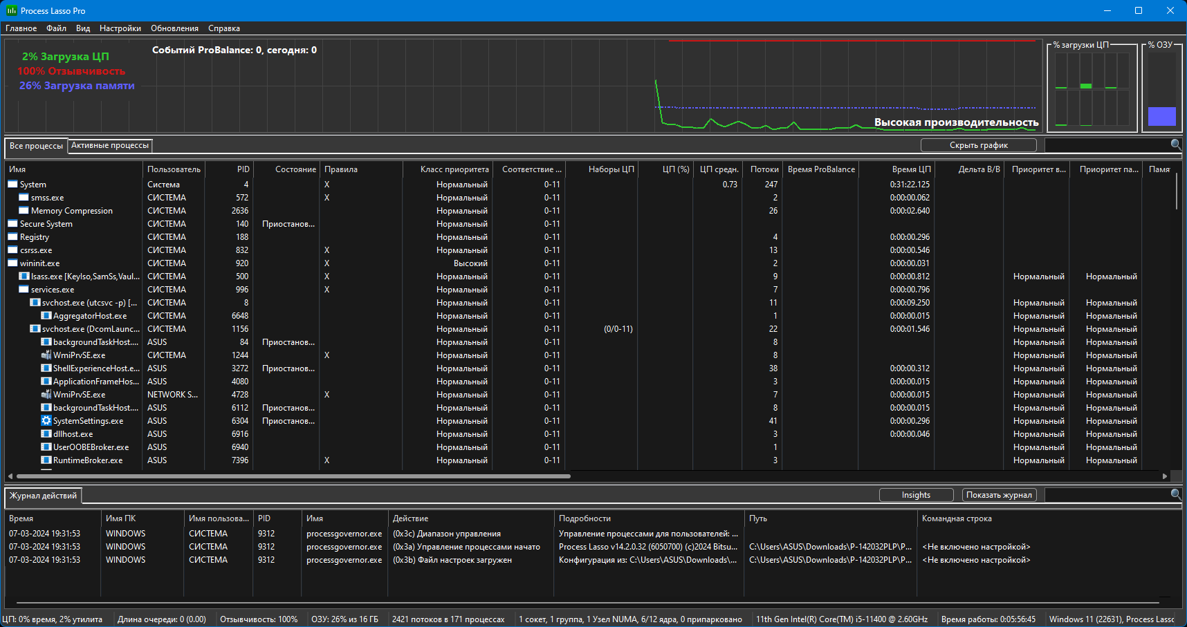 Process Lasso предлагает пользователям контроль над запущенными процессами, позволяя автоматически или вручную регулировать их приоритеты и ресурсы. Это помогает избежать зависаний и ускорить работу системы, особенно при использовании ресурсоемких приложений.