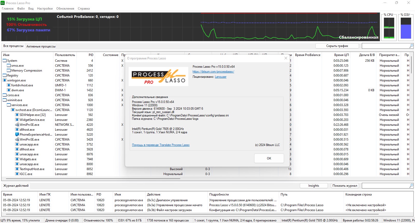 Process Lasso Pro — это мощная утилита для оптимизации работы компьютера, которая позволяет управлять запущенными процессами для повышения их эффективности и стабильности системы. Благодаря автоматическому и ручному регулированию приоритетов, программа значительно улучшает отклик и производительность ПК.