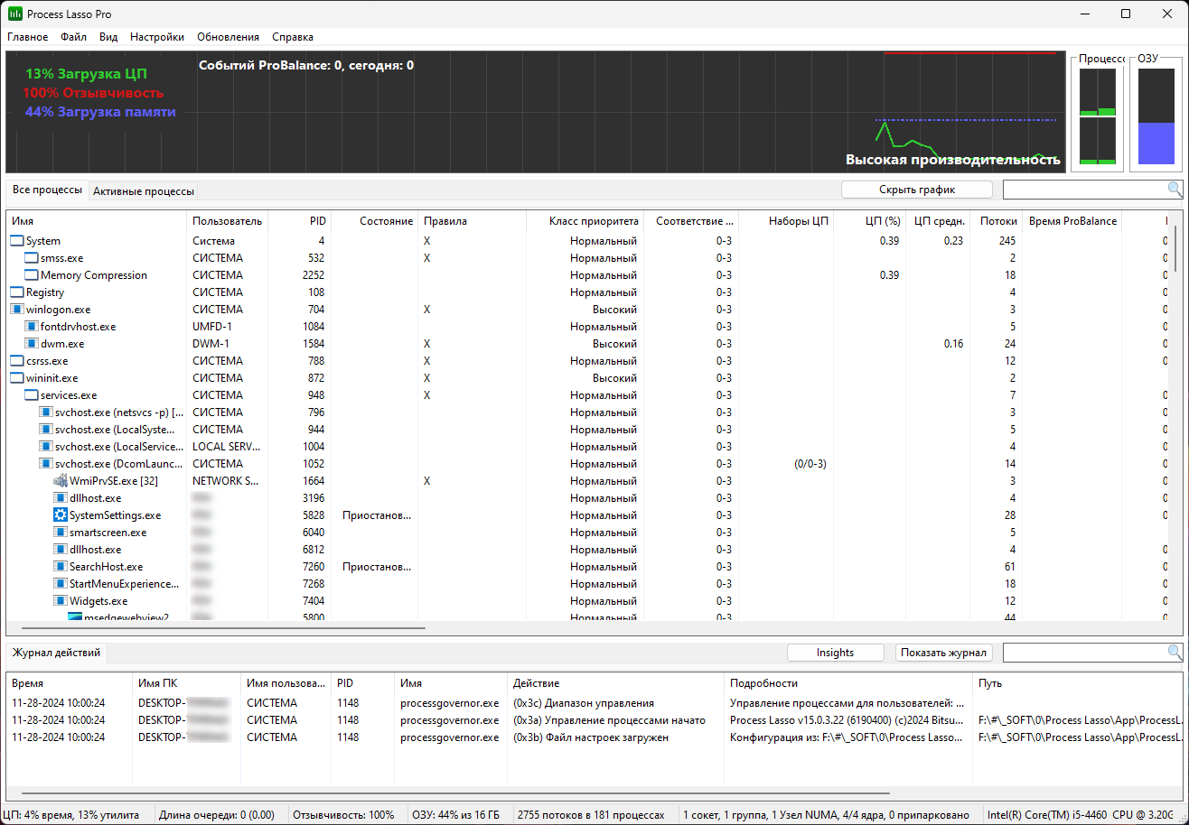 Process Lasso Pro обеспечивает автоматическую оптимизацию работы системы за счет динамического балансирования приоритетов процессов, предотвращая зависания и повышая отклик системы. Благодаря интуитивно понятному интерфейсу и богатому функционалу, программа подходит как для опытных пользователей, так и для тех, кто ищет простое решение для улучшения работы ПК.