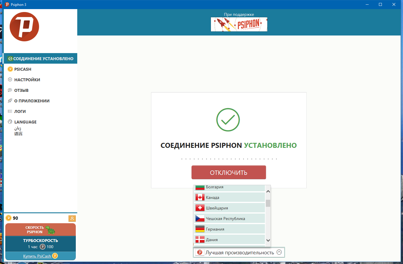 Ниже приведены основные технические параметры Psiphon 3 build 181: