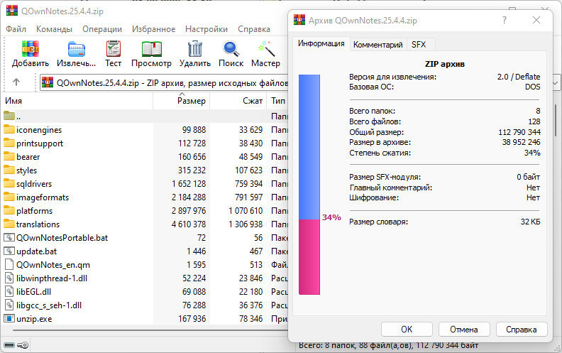 Данная версия распространяется в виде портативного архива, что позволяет запускать программу без установки — через файл QOwnNotesPortable.bat.