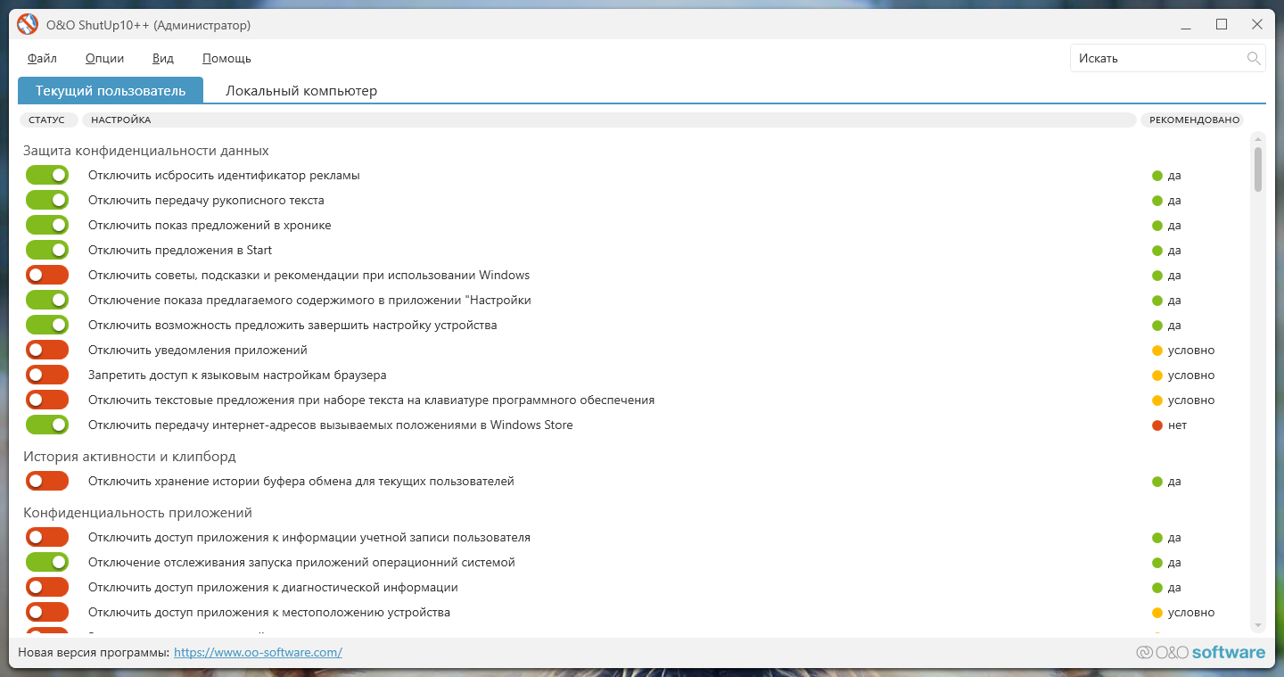 O&O ShutUp10++ 1.9.1440 Portable на русском языке
