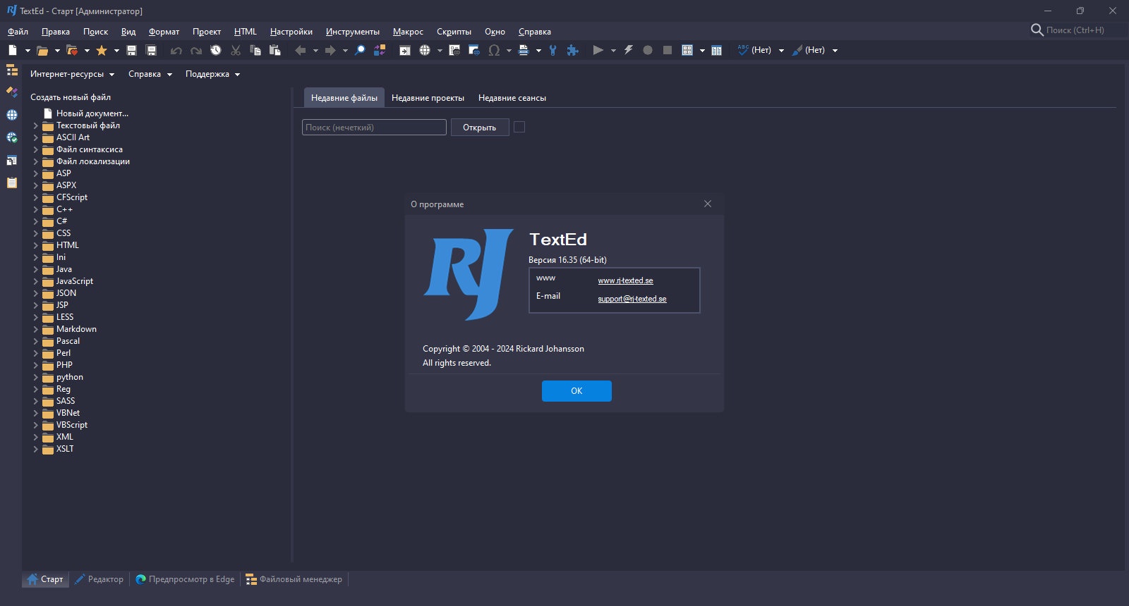 RJ TextEd — это мощный и универсальный текстовый редактор, предназначенный для профессиональной работы с кодом, версткой и текстами различных форматов. Он подходит как для программистов, так и для веб-дизайнеров, предлагая богатый набор инструментов для эффективной работы.