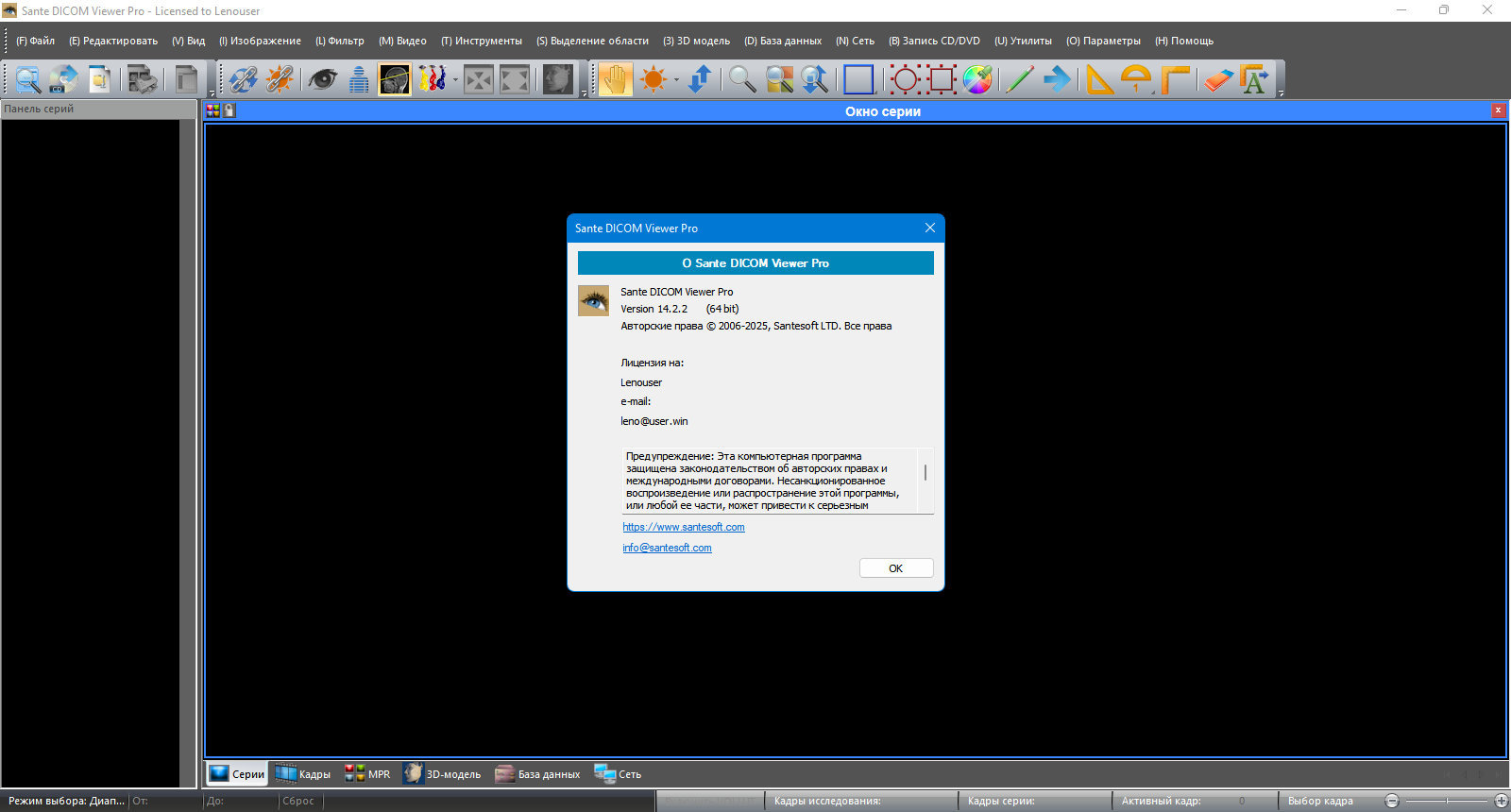 В данном разделе представлен краткий обзор возможностей и назначения программы Sante DICOM Viewer Pro 14.2.2.