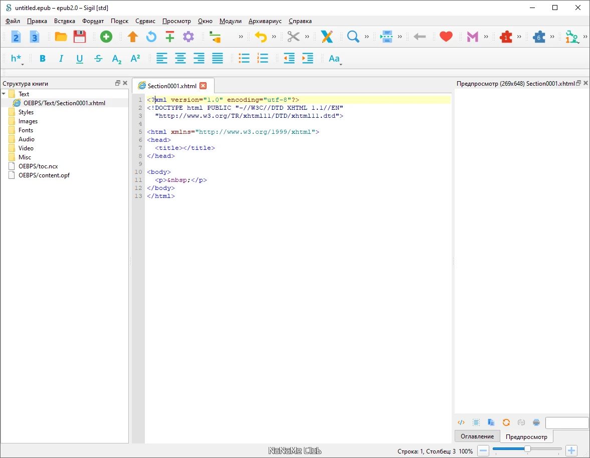 Sigil предлагает широкий набор инструментов для работы с EPUB-файлами, обеспечивая удобство и гибкость в создании профессиональных электронных книг.