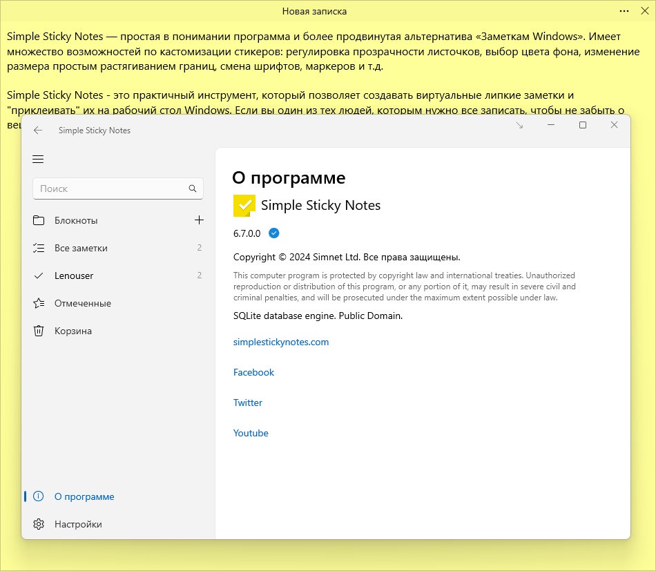 Ниже представлена актуальная информация о версии Simple Sticky Notes, а также сведения о сборке и поддерживаемых системных требованиях.