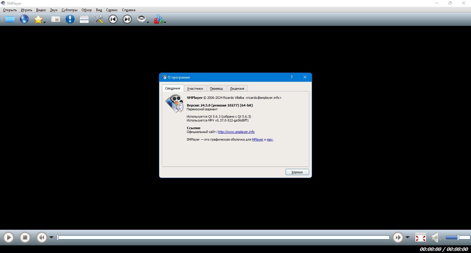 Ниже приведены основные технические характеристики и сведения о текущей версии SMPlayer: