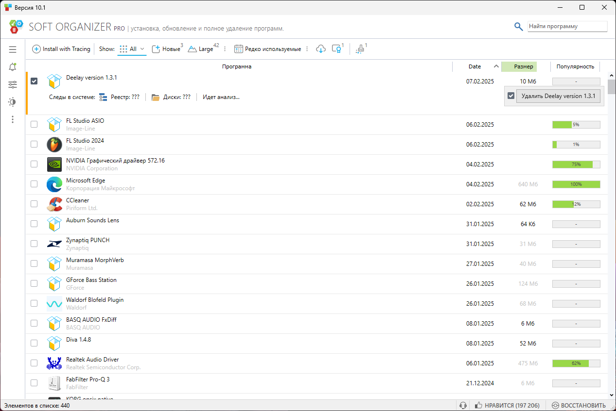 Soft Organizer Pro обладает широкими возможностями для управления установленными приложениями и их удалением. В отличие от стандартных средств Windows, эта программа отслеживает все изменения, происходящие при установке, что позволяет полностью очистить систему от следов ненужных программ.