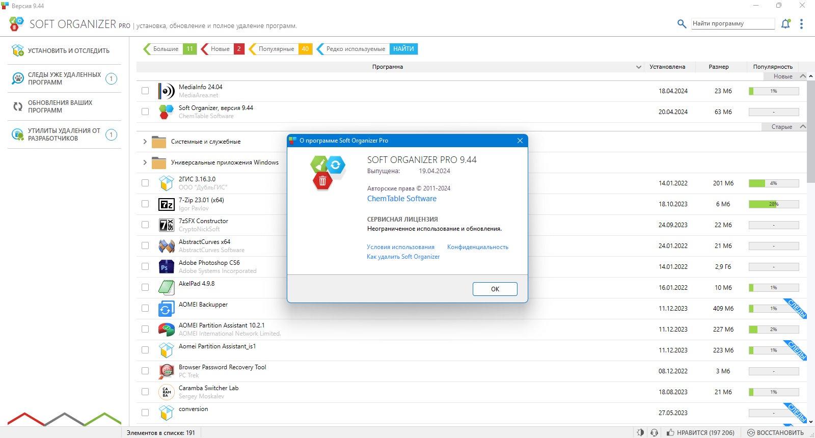 Soft Organizer Pro предназначена для удобного и эффективного управления установленными приложениями, а также для их полного удаления без следов. Это особенно важно для тех, кто ценит чистоту системы и избегает накопления мусора.