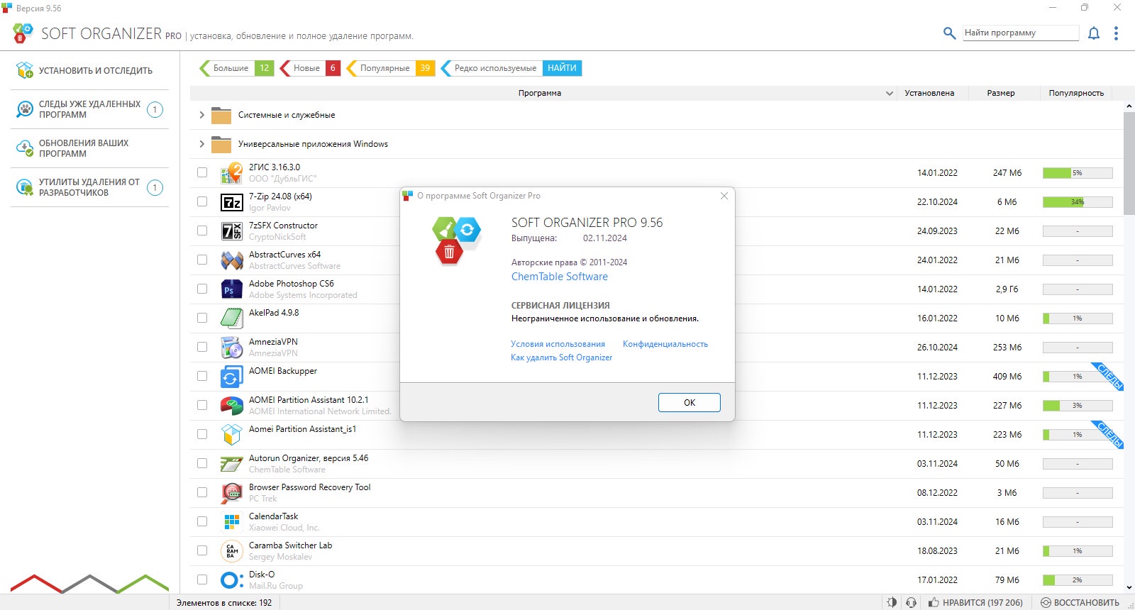 Soft Organizer Pro 9.56 — мощный инструмент для полного удаления программ из системы с возможностью отслеживания изменений во время установки. Эта программа помогает избавиться от остатков удаляемых приложений, обеспечивая чистоту системы и предотвращая накопление ненужных файлов и записей в реестре.