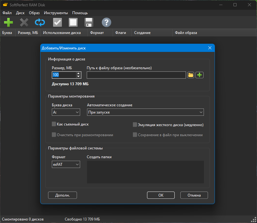 SoftPerfect RAM Disk — мощная программа, предназначенная для создания виртуальных дисков в оперативной памяти компьютера. Благодаря использованию RAM в качестве носителя, она значительно ускоряет обработку временных файлов и повышает общую производительность системы.